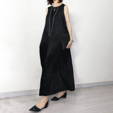陈小满原创设计重磅真丝素绉缎无袖圆领连衣裙2025新款桑蚕丝裙子