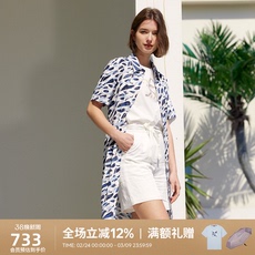 【真丝印花】AUM噢姆夏季桑蚕丝廓版轻薄蝴蝶结飘带九分袖连衣裙