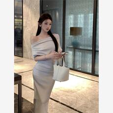 艾诺丝系列韩版百搭修身休闲时尚设计感简约圆领长袖连衣裙
