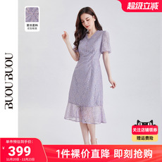 【关注领券】BuouBuou法式优雅V领显瘦精美蕾丝花型鱼尾连衣裙女