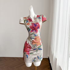黑色新中式国风改良旗袍连衣裙女早春短裙复古设计感高端礼服裙子