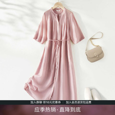 [100%真丝]DVFPOLO领中长款桑蚕丝裹身连衣裙DW4R015