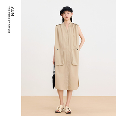 AUM噢姆夏季衬衫领天丝牛仔连衣裙长裙