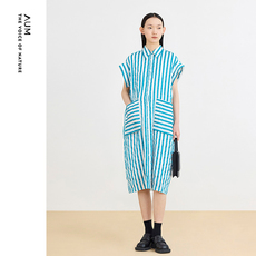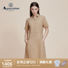 Aquascutum/雅格狮丹春夏新品女时尚休闲V型衬衫领短袖连衣裙气质