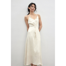 showyee/修野 早春雅致肌理细肩带挂脖设计感收腰吊带长裙连衣裙