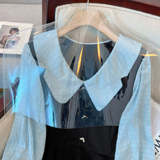 现货蝴蝶结衬衫连衣裙女长袖上衣蕾丝压褶连衣裙收腰A字型