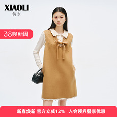 XIAOLI筱李26羊毛休闲无袖蝴蝶结装饰贝壳边双面尼背心连衣裙