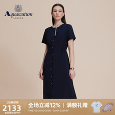 Aquascutum/雅格狮丹春夏新品女垂感修身收腰优雅圆领连衣裙气质