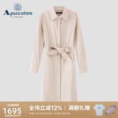 Aquascutum/雅格狮丹春夏新品女连衣裙棉质系带长袖裙Q4573EL031