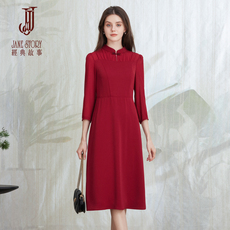G2000女2025秋冬新款高级感易打理知性柔美西装领A字裙型连衣裙.