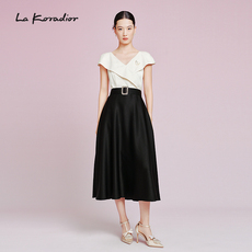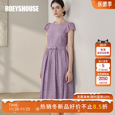 LANCY/朗姿2024夏季新款圆领收腰a字连衣裙气质简约短款通勤裙女