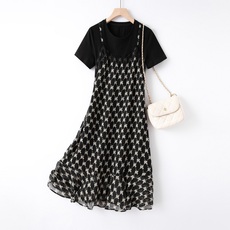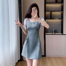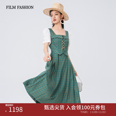一电影一时装夏季新款方领假两件格子连衣裙女士高级好看流行气质