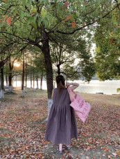 Komorebis 蓝紫色格纹纯棉双排扣背心连衣裙
