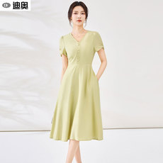 迪奥法式连衣裙女25夏新款时尚气质休闲通勤A字中长裙减龄大摆裙