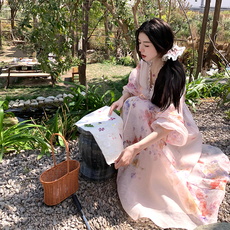 恩●2025夏季新品 法式碎花连衣裙女气质显瘦小清新a字茶歇裙585