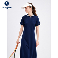 Navigare意大利小帆船修身女士连衣裙2025夏季新款防蚊短袖连身裙