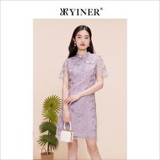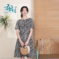 固执2025夏季新款中式气质立领刺绣短袖中长连衣裙50842LQ09322