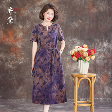 高档国风妈妈中式连衣裙2025夏季新款气质宽松遮肉显瘦大码长裙子