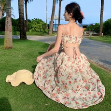 原版布原版做工内里海边度假温柔挂脖吊带连衣裙气质女沙滩