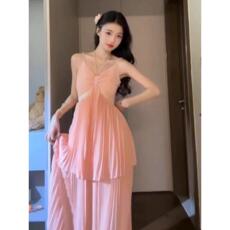 法式新款气质小香风夏季收腰显瘦长裙子显瘦百搭马甲背心连衣裙女