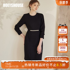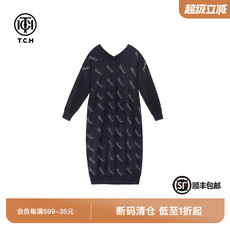 TCH春秋针织连衣裙烫钻法式V领长款绵羊毛打底T72C30E9010