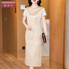 奥黛改良旗袍长款夏季婵服女装盘扣修身超仙连衣裙中国风仙女长裙