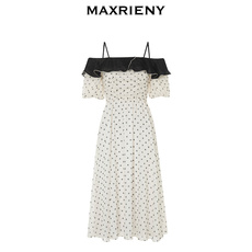 【奥莱】MAXRIENY复古宫廷浪漫风撞色蕾丝连衣裙波点裙子