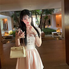 green大姐姐【粉显白茶】乖少女气质小百花娃娃领收腰连衣裙长款