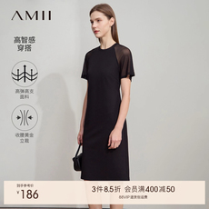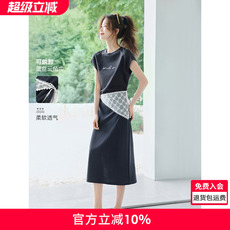 一城画一夏季新款时尚文艺宽松蓝彩色两件套网纱五分袖连衣裙