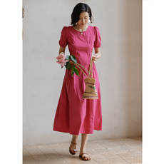 衣纱布菲雅露国风连衣裙新款女夏季泡泡袖设计感修身气质长裙