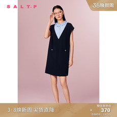 诗篇专选减龄小A型拼接压褶撞色设计宽松轻盈连衣裙2025夏季新款