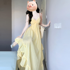 不规则褶皱吊带连衣裙女2024春夏季新款轻奢收腰显瘦中长款裙子
