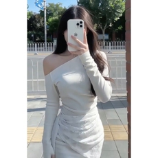韩国东大门新品 巨显身材性感辣妹风半开领紧身包臀短款连衣裙女