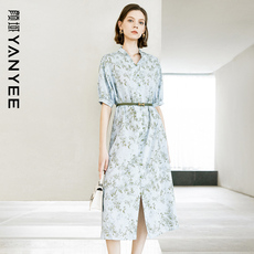 颜域短袖气质连衣裙2026新款女夏季时尚通勤中长款印花V领裙子女