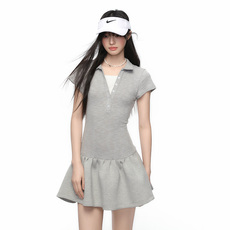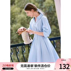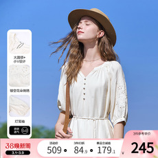 秋水伊人V型翻领气球裙下摆连衣裙2026夏季新款女休闲简约中长裙