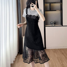 假两件连衣裙子女士夏季2026年春秋新款大码小个子气质短袖中长裙