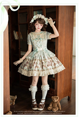【定金】夏日原创重工doll感古董柄图Lolita丘比熊OP款绶带连衣裙