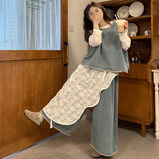 大码女装2026早春文艺叠穿牛仔马甲阔腿裤套装不规则设计感连衣裙