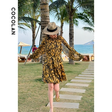 COCOLAN【芦花】沙滩裙印花长袖连衣裙女Q61LYQ2012