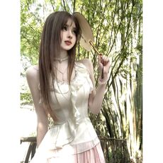法式浪漫甜美吊带连衣裙夏季新款少女学生小个子收腰V领仙女裙子