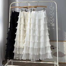 浪漫荷叶边蓬蓬短裙夏季休闲a字松紧高腰蝴蝶结仙女裙法式半身裙