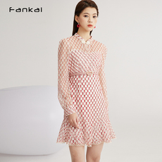 梵凯连衣裙浪漫心形印花春秋甜美气质长袖鱼尾中裙小个子通勤裙子