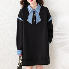牛仔拼接设计感小众卫衣裙子女秋冬新款宽松减龄中长款休闲连衣裙