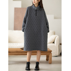 冬装新款女装日系甜美立领棉麻碎花加绒长裙加厚宽松长袖连衣裙