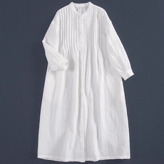 午后微光 大人气新中式盘扣纸片人条纹衬衫棉麻连衣裙《momonaco