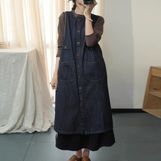 2025年新款重工刺绣民族风背心马甲裙复古V领盘扣无袖长款连衣裙