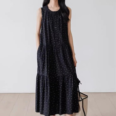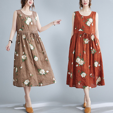 天然棉麻连衣裙夏季圆领简约宽松气质纯色休闲无袖长款背心长裙