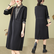 假两件卫衣连衣裙女秋装2024年新款polo领条纹拼接垂坠感休闲裙子