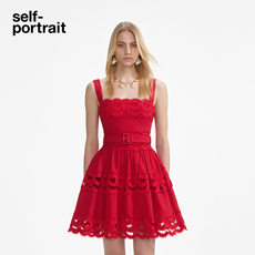7折【曙色绯红】蕾丝边连衣裙女秋季流苏收腰蛋糕裙雪纺印花长裙