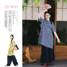 棉麻格子短袖连衣裙女夏小个子宽松休闲2025新款文艺叠穿衬衫裙子